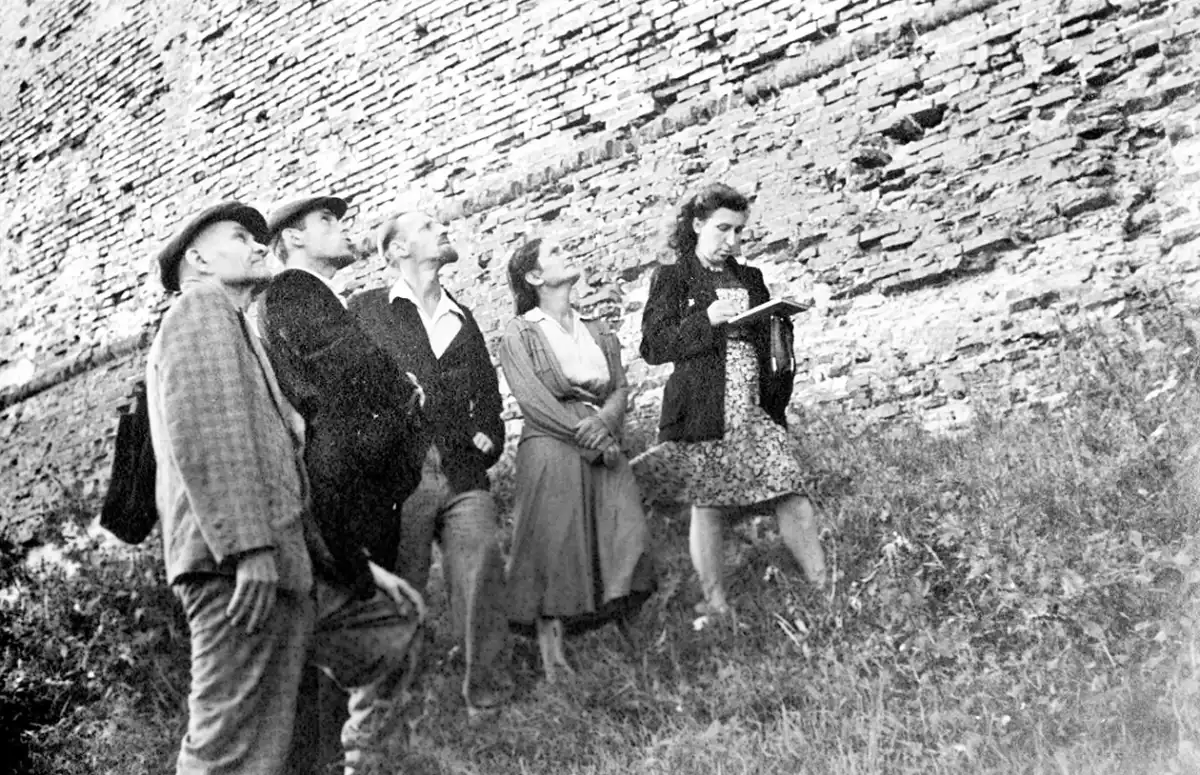Реставраторы первыми увидели новгородские памятники как бы в разрезе. Да, скальпелем поработала война, вскрыв историю перестроек и поновлений. И впервые нужно было решать, как с этим быть. Если памятник имеет формы, оставленные несколькими столетиями? Снимать эти «наслоения»? А если они тоже интересные?