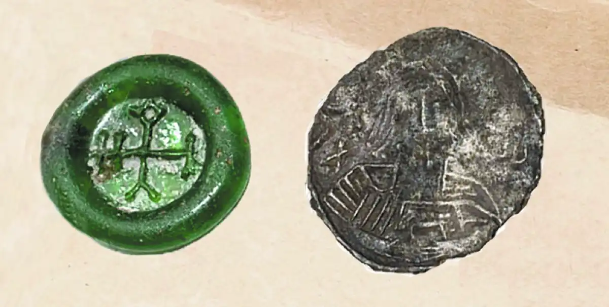 Археолог и музейщик Николай ПАХОМОВ писал: «Совершенно особое место среди нумизматических находок раннего времени, происходящих с Городища, занимает византийский экзагий из зелёного стекла, имеющий чёткие знаки ‹…› и являющийся, по существу, уникальной находкой среди новгородских древностей».