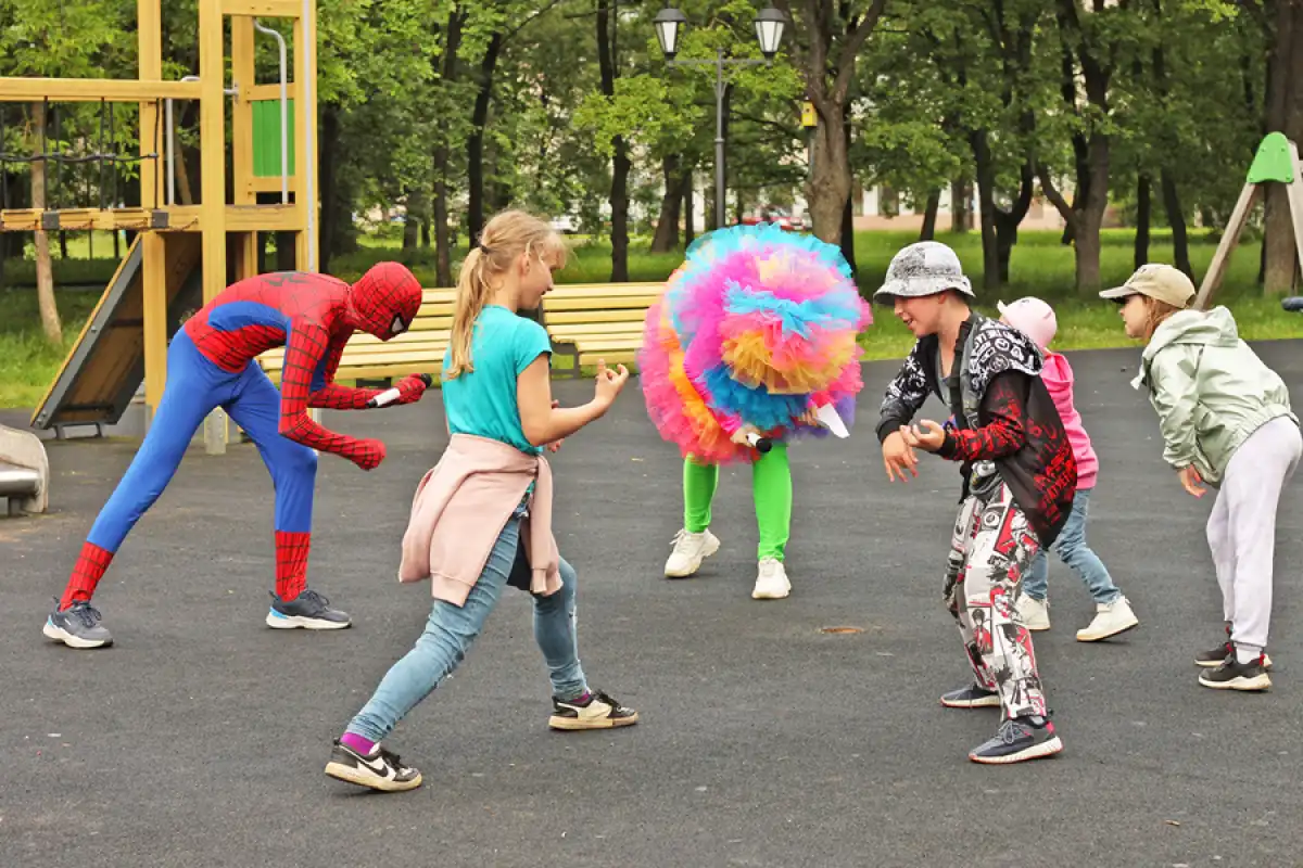Когда нет дождя, мы не пропускаем детские события. Там и игры с аниматорами, и занятия различные, и рисование, и подвижные игры. В общем, всё очень здорово!