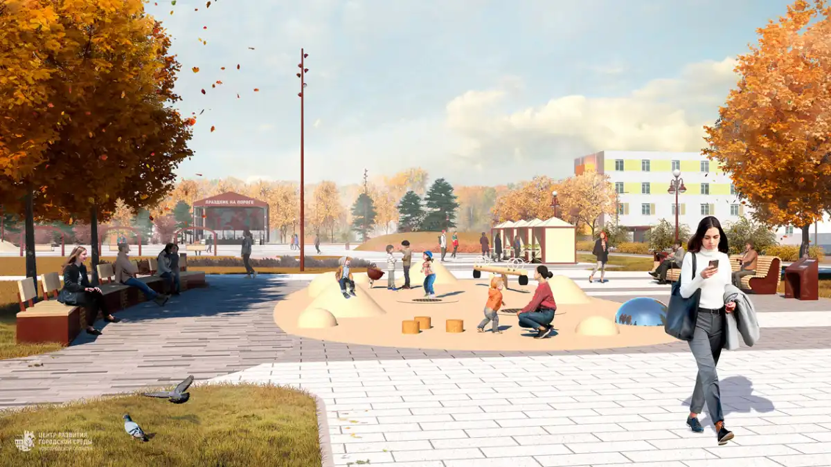 Второй этап, реализация которого намечена на 2026 год, продолжит главную идею концепции — площадь станет местом для отдыха, общественных мероприятий и одновременно пропуском в историю Боровичского округа. В 2023 году тут, например, поставили скамейки, форма которых напоминает речные волны, и арочные качели с отсылкой к архитектуре торговых рядов, а в 2026-м построят небольшую игровую площадку «Боровичские пороги». Её заполнят полусферами разного размера, напоминающими каменистое дно бурной Мсты, и установят игровые элементы, отсылающие к процессу сплава по реке, дополнив амортизирующим резиновым покрытием.