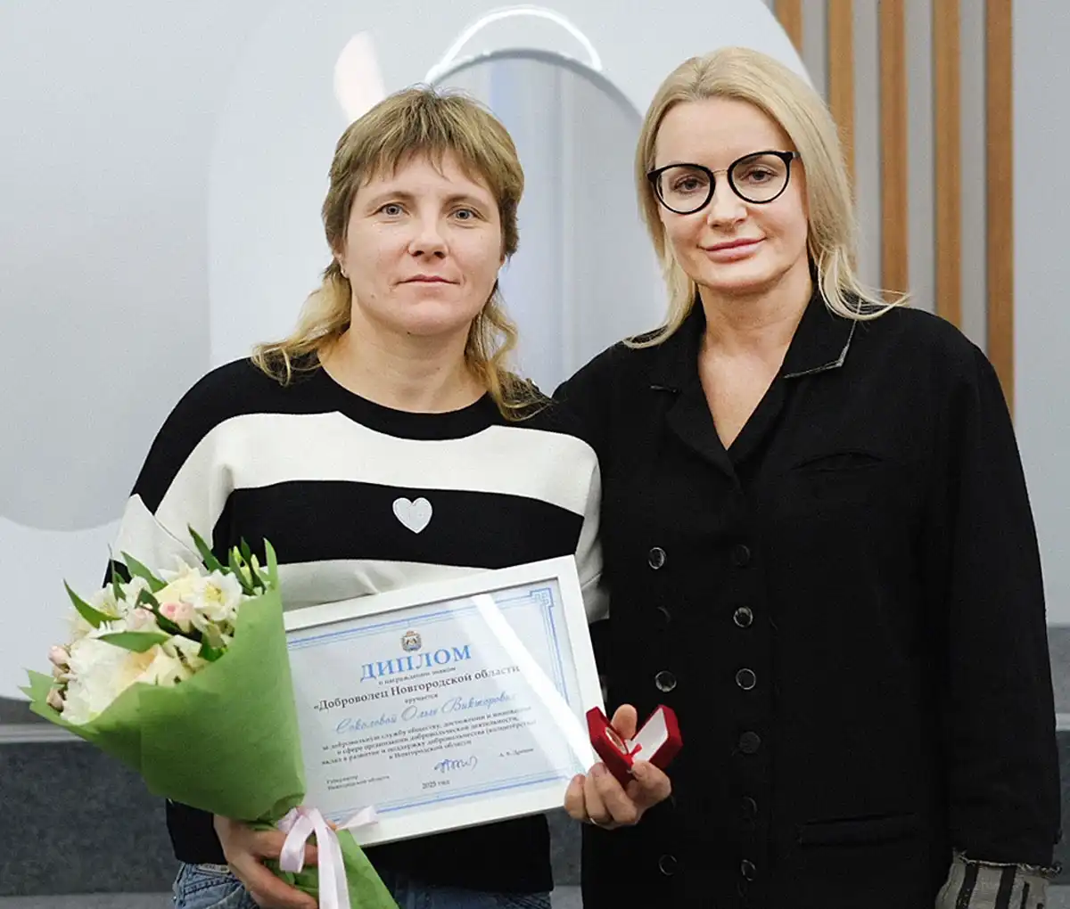 В начале декабря Ольга была удостоена почётного знака «Доброволец Новгородской области». Она призналась, что волонтёрство стало образом её жизни. Помимо проведения добровольческих акций, она помогает в поиске людей в составе отряда «Феникс»: