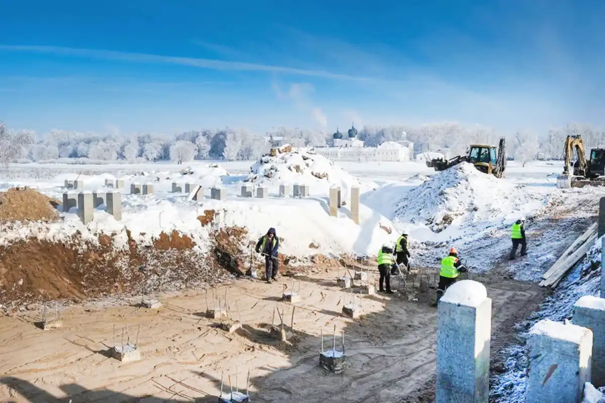 Левый берег Волхова в Великом Новгороде сегодня — средоточие важных для города и всего региона строек. Почти у самой кромки льда, по соседству с Инновационным научно-технологическим центром «Интеллектуальная электроника — Валдай», строят приводную станцию канатной дороги. На противоположном берегу, рядом с Антониевым монастырём, тот же подрядчик — петербургская компания «НордСтройГрупп» — возводит обводную станцию. Ход работ проверил заместитель губернатора области Илья КРАШЕНИННИКОВ.