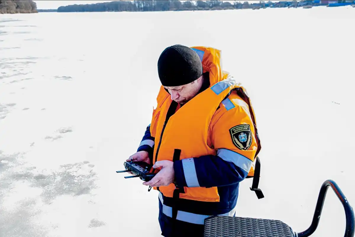 Владимир РЯБОВ, другой заместитель начальника аварийно-спасательной службы, сегодня рулевой квадрокоптера. Он направляет «птицу» поближе к рыбакам. Это не имеет никакой административной перспективы. Для этого должен быть другой рейд — с полицией. А тут — чисто увещевательно. Срабатывает только с помощью мегафона:
