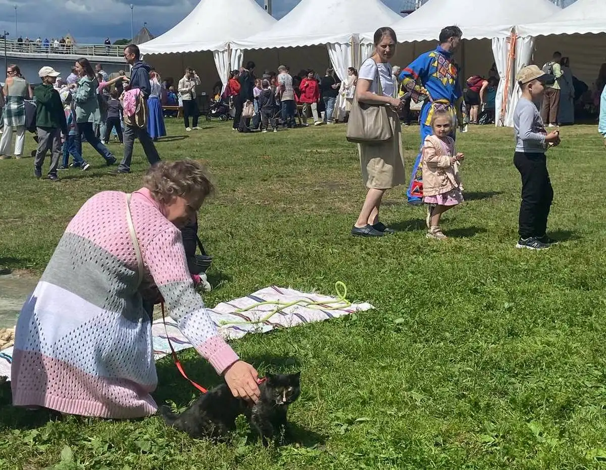Восторг и ажиотаж у посетителей фестиваля вызвала кошка Буся, которая пришла на Ярославово дворище вместе с хозяйкой и её детьми. Пока дети участвовали в мастер-классах, грациозная красавица шоколадного окраса получала свою порцию внимания. Хозяйка с гордостью водила свою питомицу среди толп людей, и кошка чувствовала себя на народном празднике вполне комфортно.