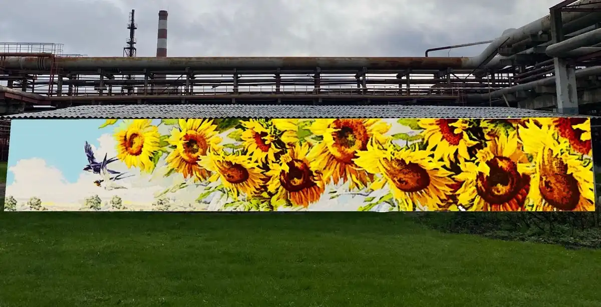 Антон Макушин, являющийся автором и других композиций на территории предприятия, нарисует на фасаде здания подсолнухи, небо и птиц. Если не подведёт погода, он приступит к работе на этой неделе.