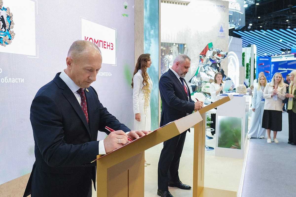 Сегодня, 18 июня, на Петербургском международном экономическом форуме первый заместитель губернатора Новгородской области Евгений Богданов и генеральный директор научно-производственного концерна «Компенз» Ильяс Ягофаров заключили соглашение о намерениях по реализации инвестиционного проекта.
