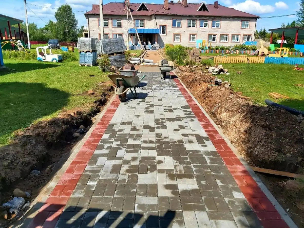 – На участке за новым забором начали мостить центральную дорожку, – рассказал глава Любытинского округа Андрей Устинов. – Частично демонтированы и вывезены старые игровые элементы, остальные подкрашивают поярче. Поставка новых горок и качелей ожидается к субботе.