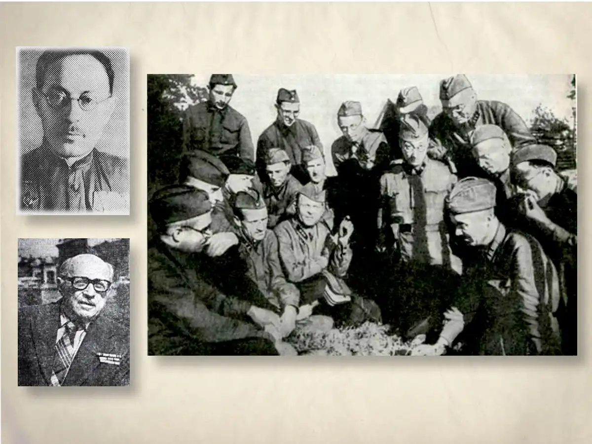 Сохранилась фотография о встрече Виктора Сытина с узниками концлагеря.