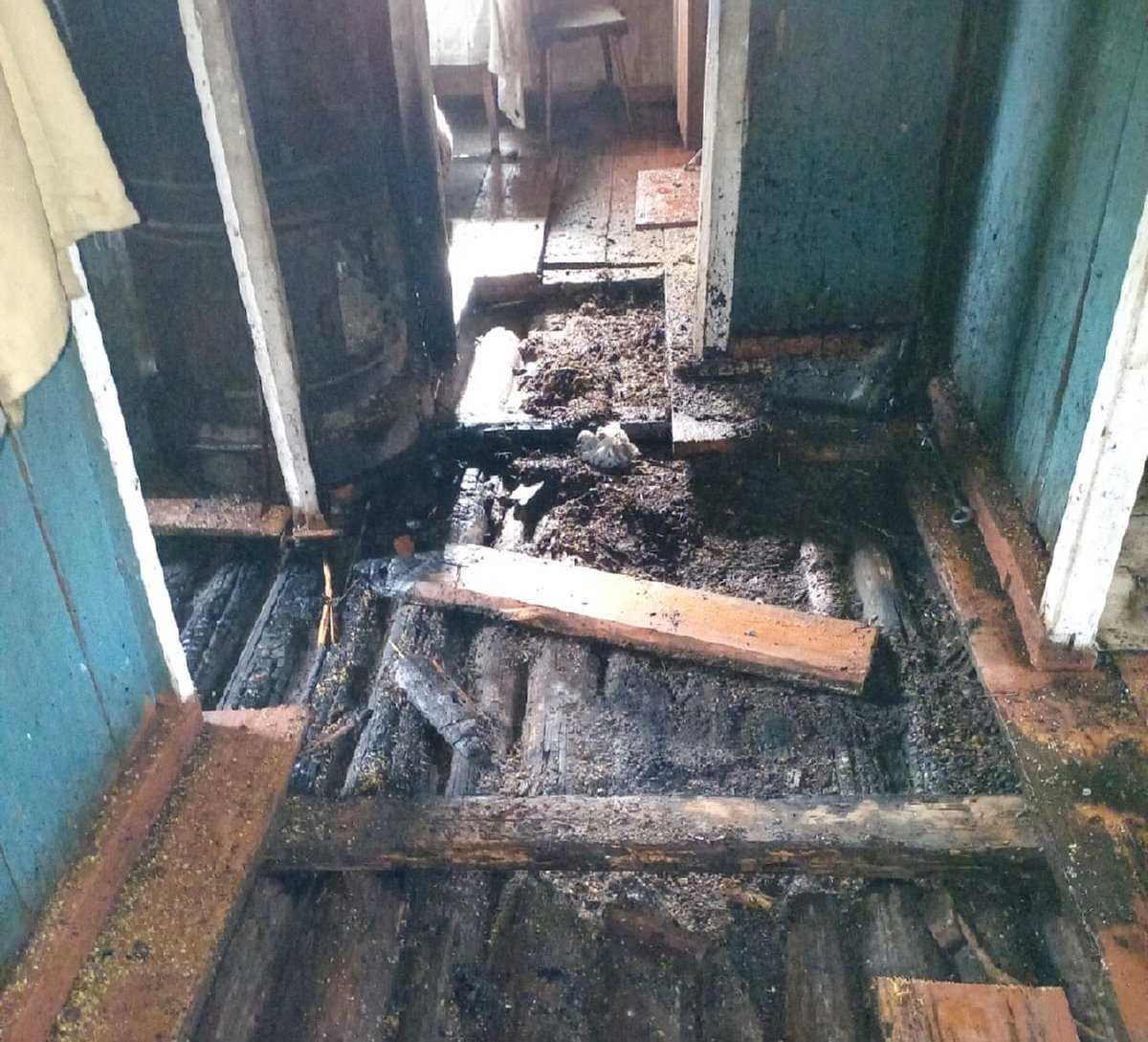 Когда пожарные прибыли на место происшествия, наблюдалось задымление. Горел пол возле печи на площади около четырёх квадратных метров.
