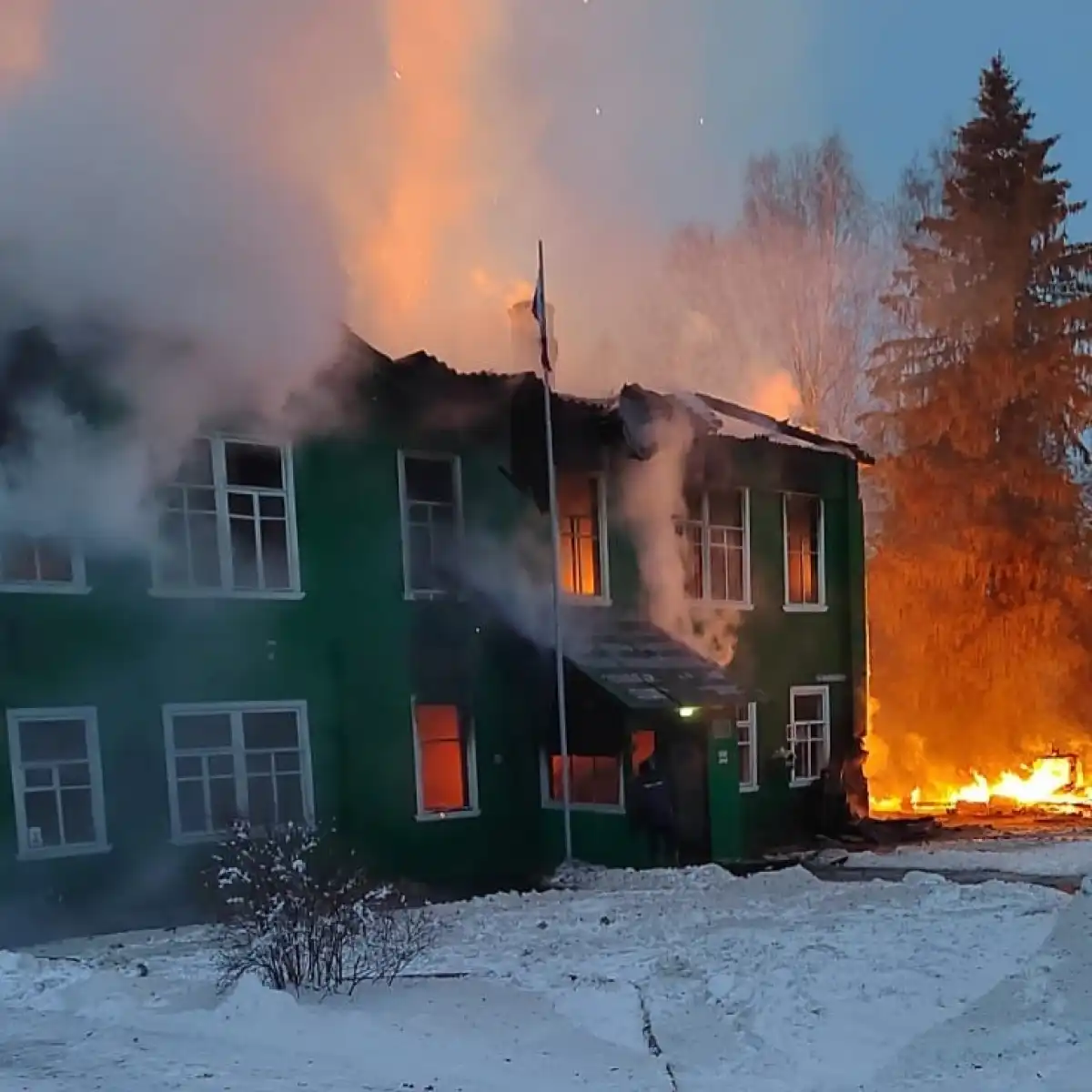 Сегодня, 1 января, утром в экстренные службы поступило сообщение о пожаре в здании школы № 1 в Пестовском округе в населенном пункте Богослово.