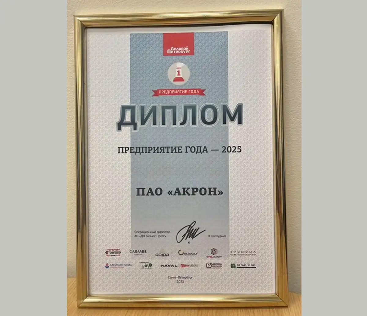 ПАО «Акрон» стало лауреатом премии «Предприятие года», организованной редакцией газеты «Деловой Петербург». Компания вошла в общий Рейтинг промышленных предприятий Северо-Западного федерального округа, а также в ТОП-5 компаний в отраслевом рейтинге предприятий химической промышленности. АО «СЗФК» (входит в Группу «Акрон») также отмечено среди предприятий СЗФО в области добычи полезных ископаемых.