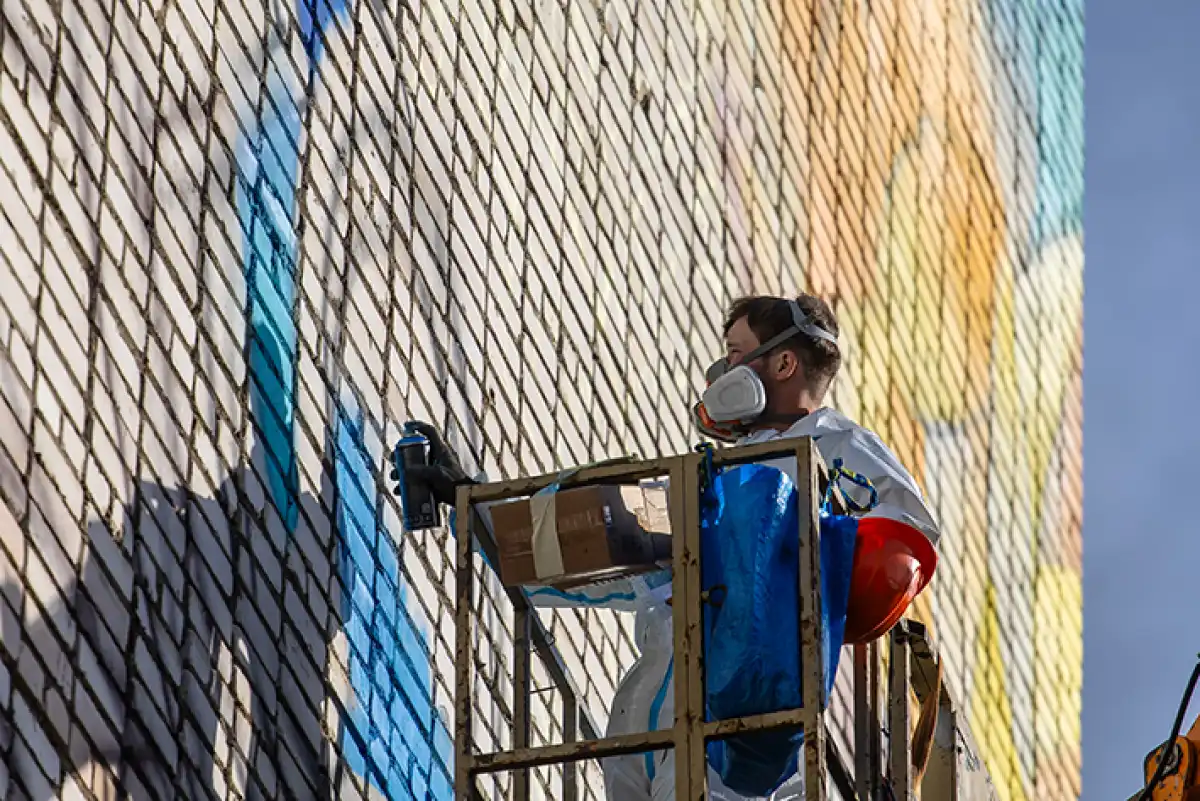 В рамках фестиваля уличного искусства «Страницы истории» в посёлке Парфино началась работа над новым муралом. Художник из Москвы Андрей Кузнецов создаёт масштабную роспись на фасаде одного из домов. Об этом рассказали в паблике фестиваля.