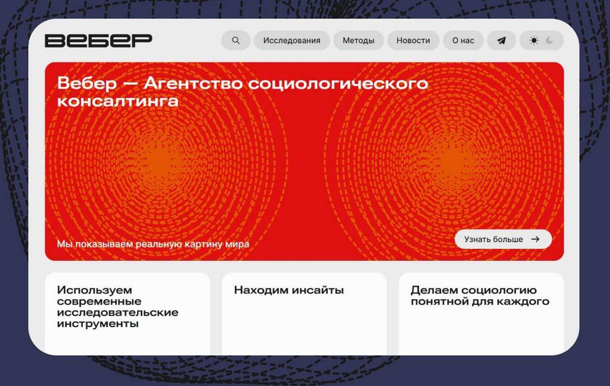 – При создании агентства социологического консалтинга «Вебер» мы делаем акцент прежде всего на нескольких принципах: использование современных инструментов, высокая скорость проведения исследований и гарантия надёжных и достоверных данных, – сказала генеральный директор «Вебера» Елена Удалова. – Онлайн-метод, который мы используем для изучения общественного мнения, предоставляет широкие исследовательские возможности и позволяет охватывать любые масштабы, сохраняя репрезентативность выборки. Имея большой опыт работы с разными задачами, мы выстроили механику, которая позволяет нам адаптировать свои услуги под любые запросы».