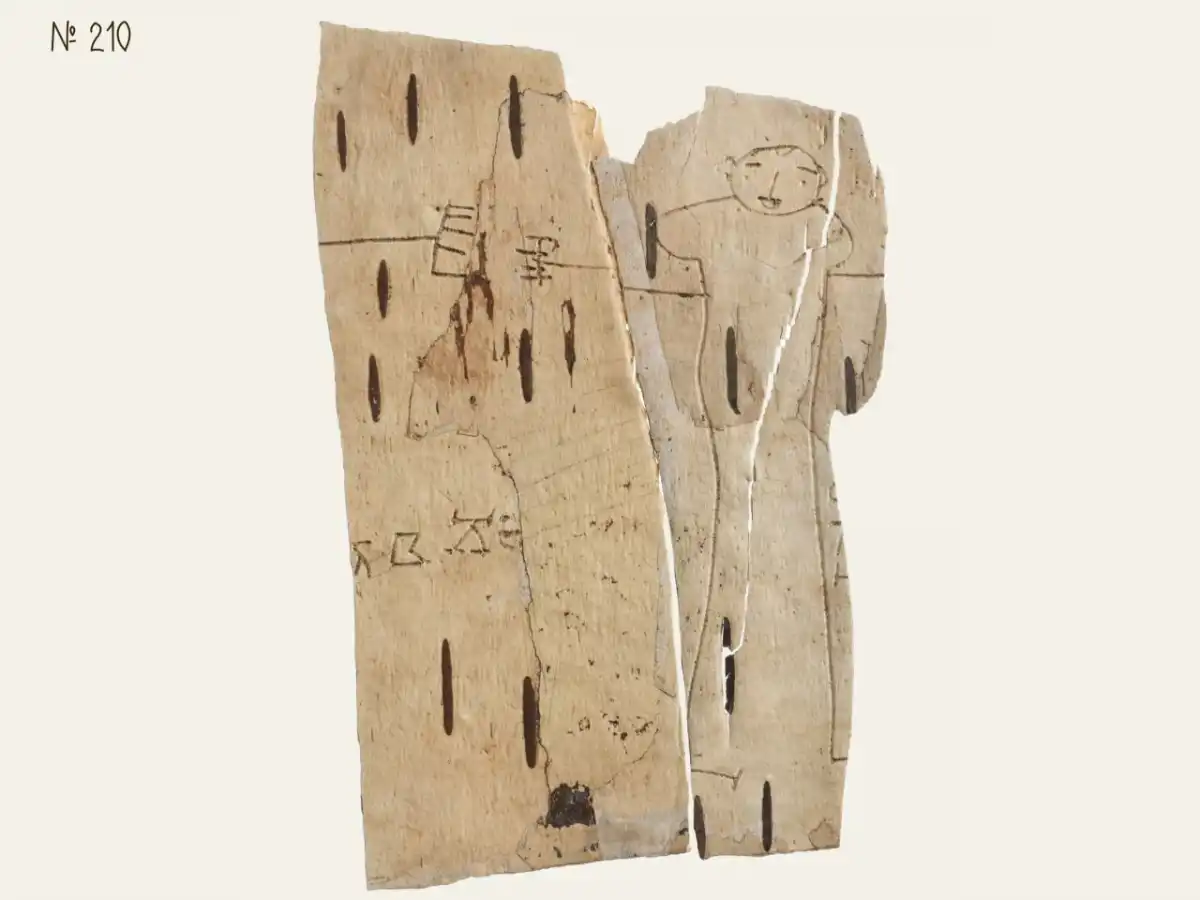 № 210 — рисунки и записи мальчика Онфима (XIII век), ставшие одними из самых известных образцов древнерусской бытовой письменности.