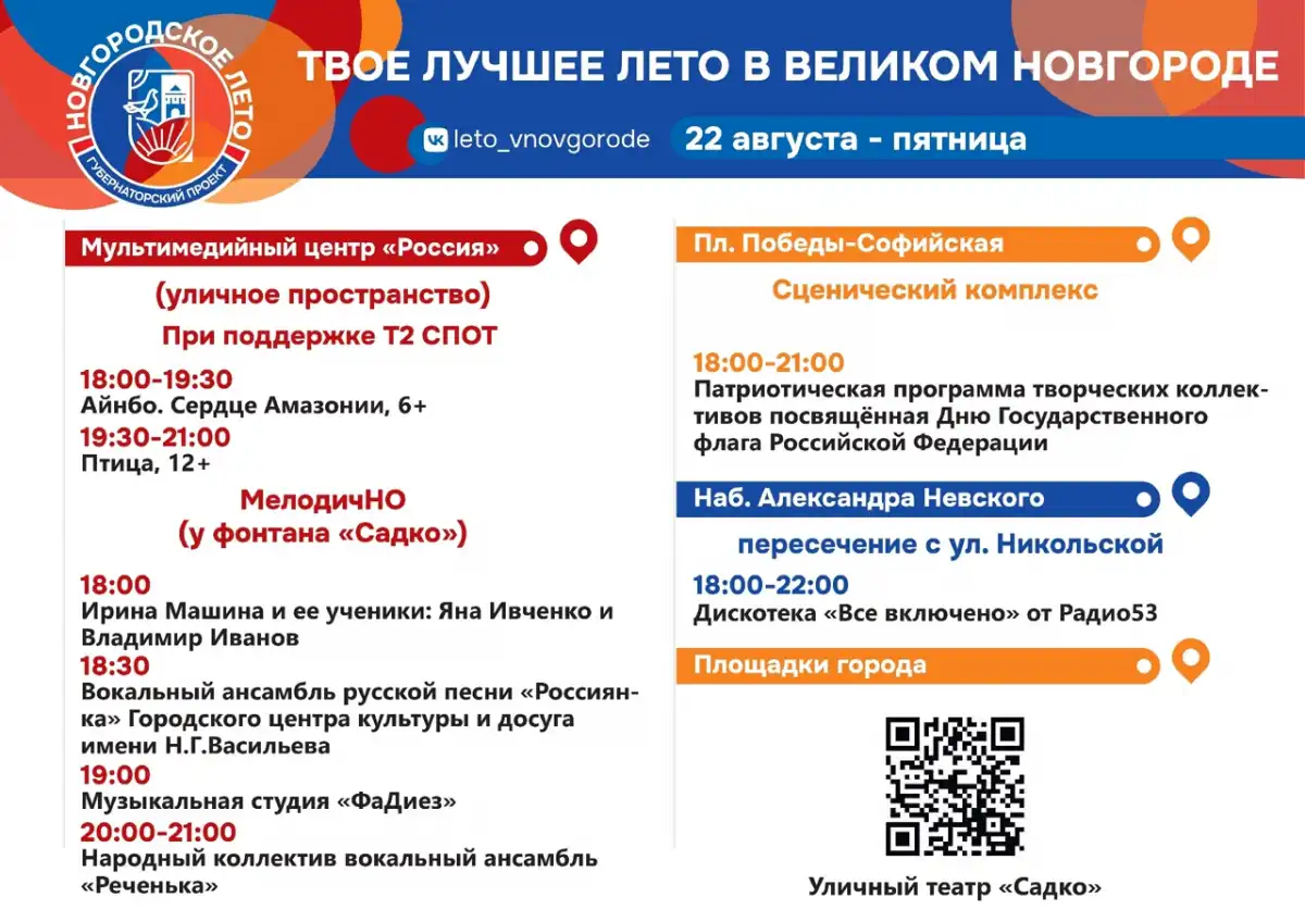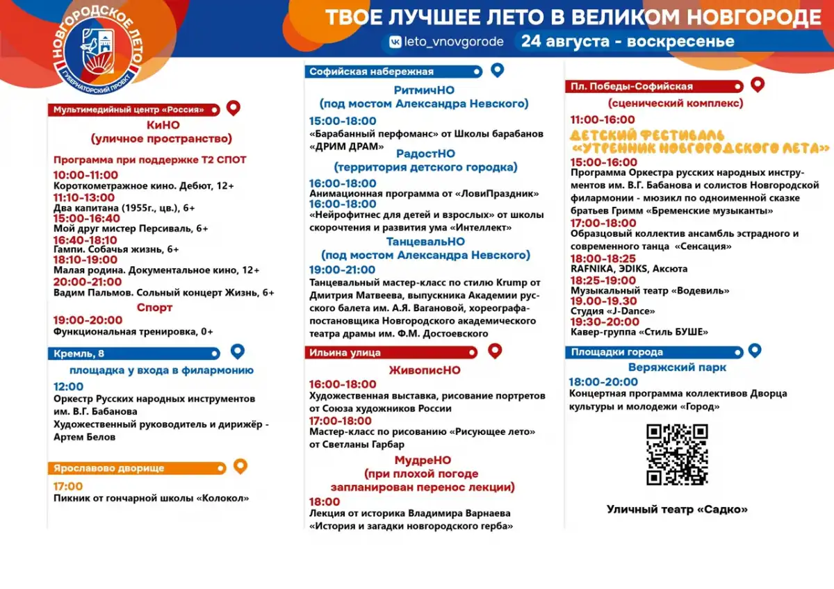 Сегодня, 22 августа, вечером Великий Новгород погрузится в предпоследние выходные самого масштабного регионального фестиваля под открытым небом «Новгородское лето».