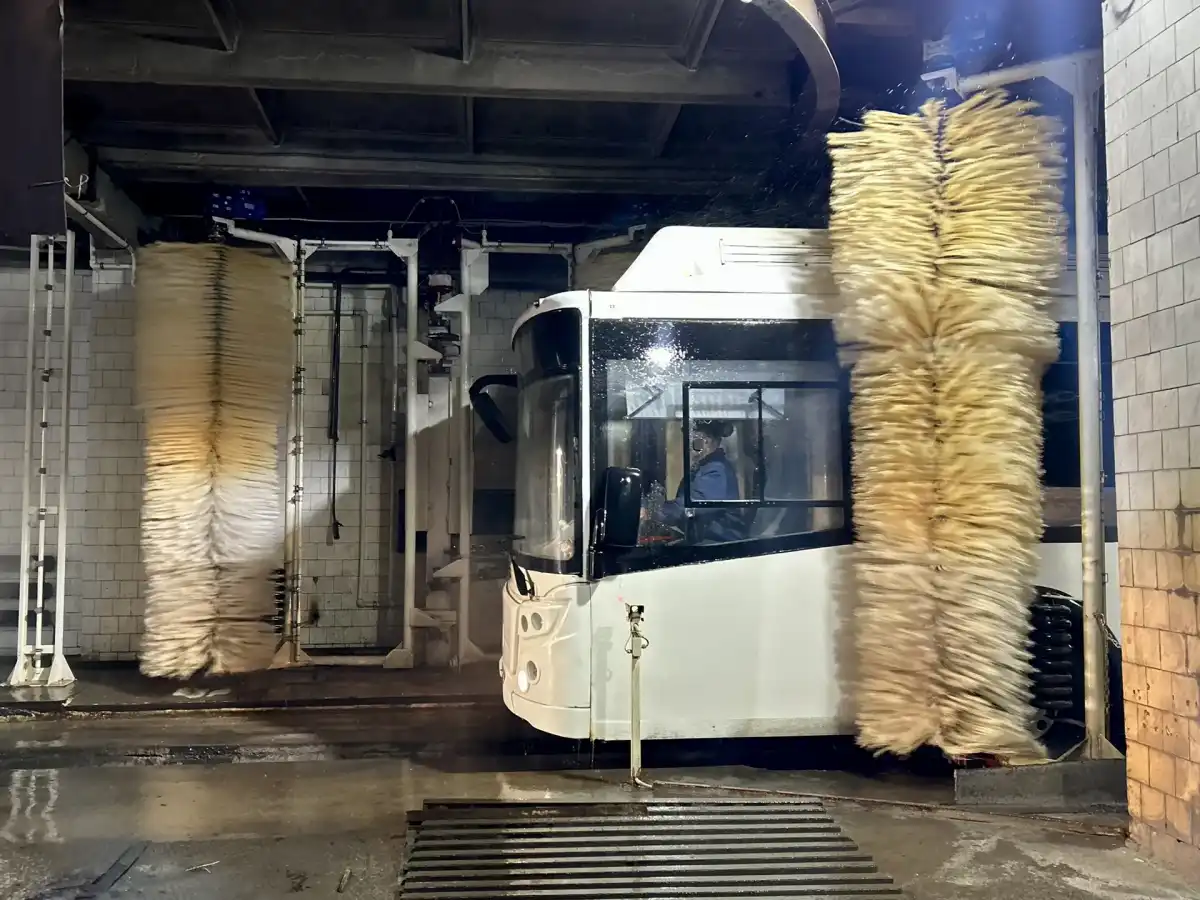 —В вечерне-ночное время сотрудниками предприятия проводится как наружная мойка кузова, так и внутренняя очистка салона автобуса: моются поручни, ручки, окна, пол, протираются сидения. Помимо ручной работы используется специальная проездная мойка для автобусов, — уточнили в ведомстве.