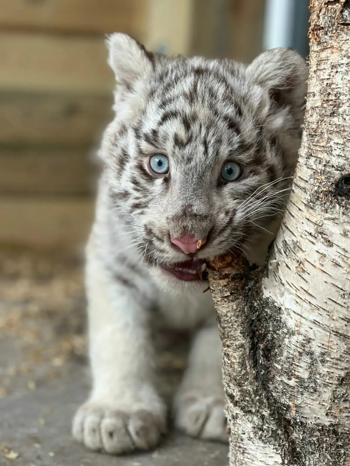 Белая тигрица Мария из Окуловского зоопарка отмечает первый день рождения