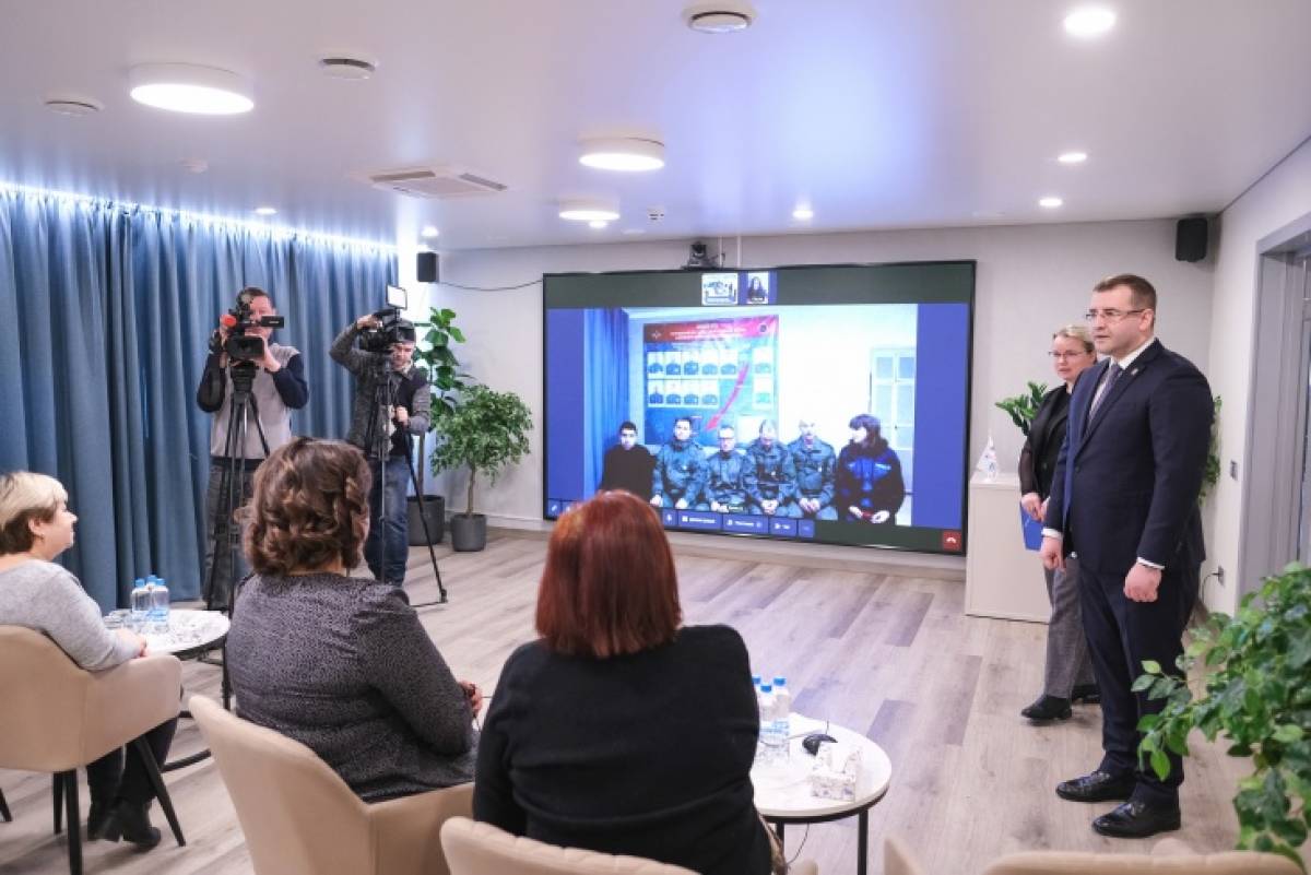 В преддверии 23 февраля в региональном филиале государственного фонда «Защитники Отечества» состоялся телемост с новгородскими бойцами, находящимися в зоне специальной военной операции. В режиме реального времени родные и близкие смогли пообщаться со своими мужьями, отцами и сыновьями, которые несут службу в составе 27-го артиллерийского полка.